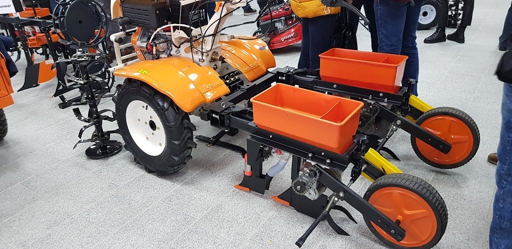 Mingsin 2BSF-2B high precision high precision seed drills can be coupled to cultivators, walking tractors and mini tractor. This product is the perfect choice for sowing corns and is suitable for both straw and vegetable growing. The drive wheels are operated by means of a chain on the blocks for the distribution of the signs, letting the seed fall into the ditch prepared by the cultivator. The product has a tub for placing the seeds.