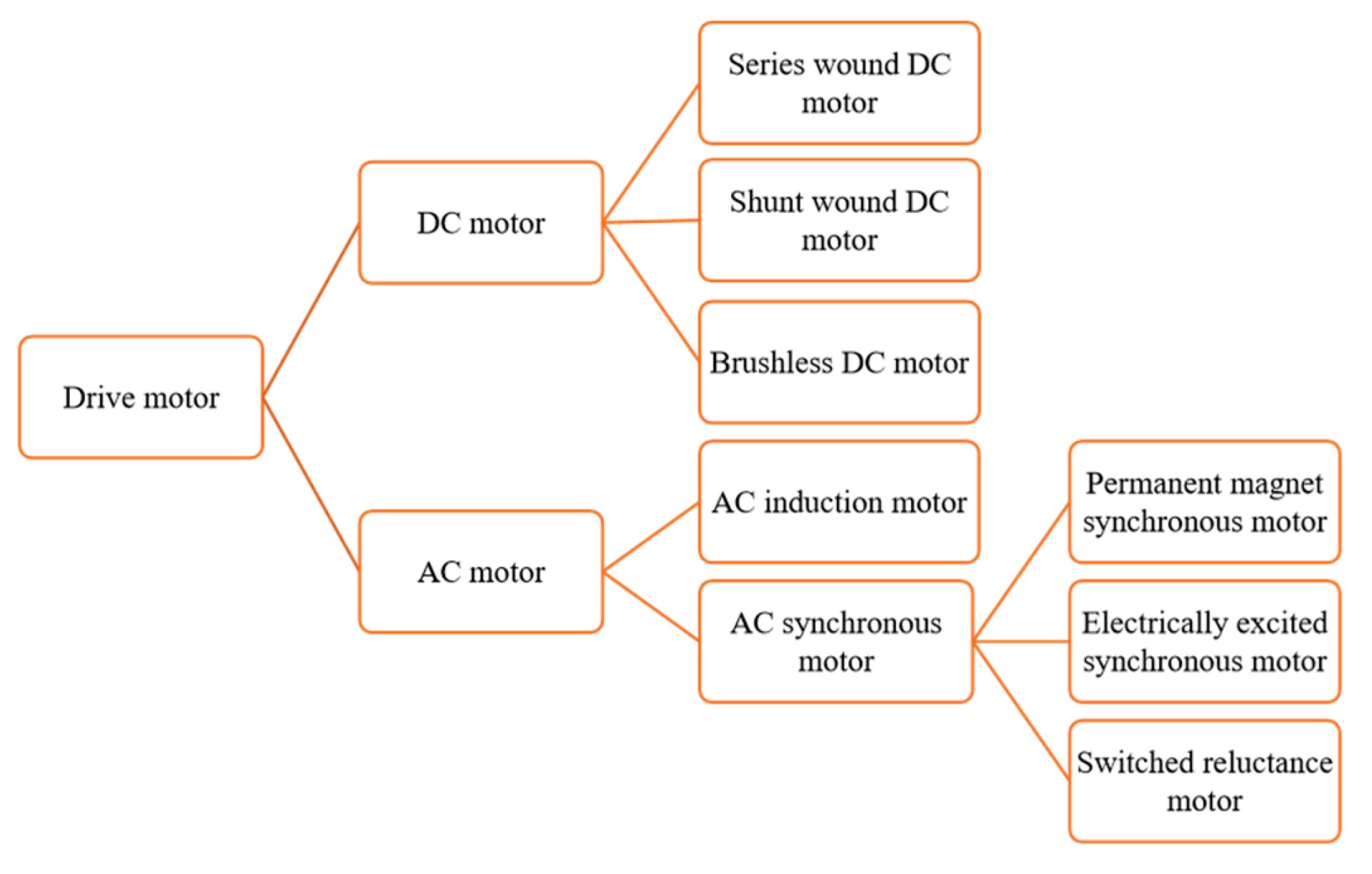 The use of electric motors for driving is one of the main differences between electric tractors and traditional tractors. Research on electric motors and their drive transmission systems is also one of the hot topics for electric tractors. Figure 7 shows the type of motors used in electric tractors.