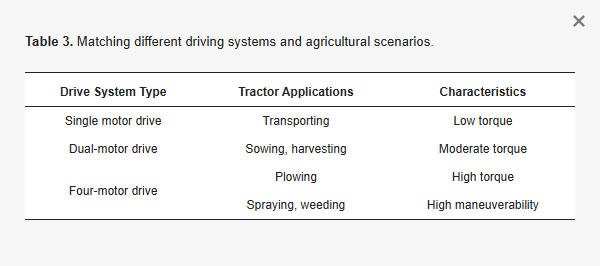 Table 3. Matching different driving systems and agricultural scenarios.
