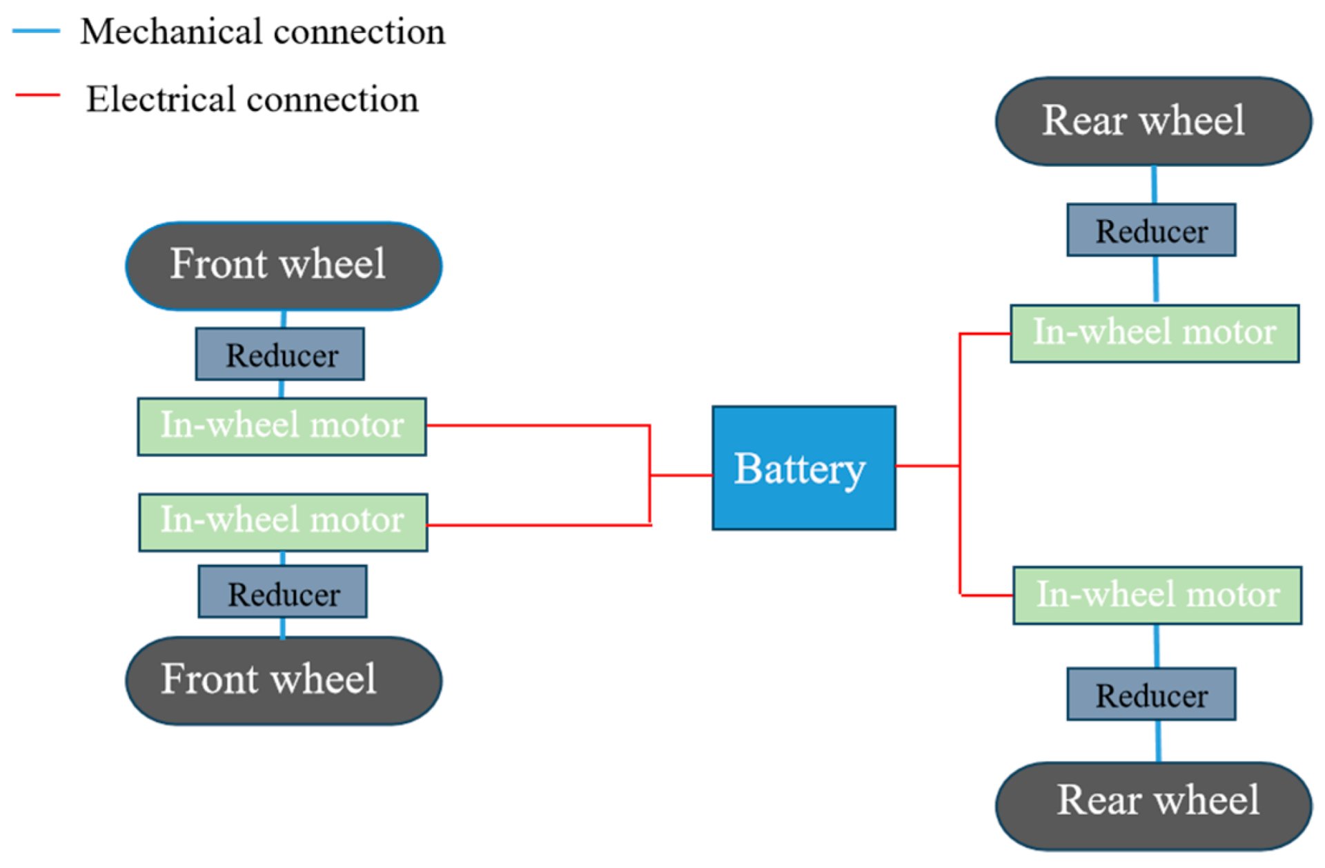 Figure 10. Schematic diagram of an electric tractor driven independently by four motors.