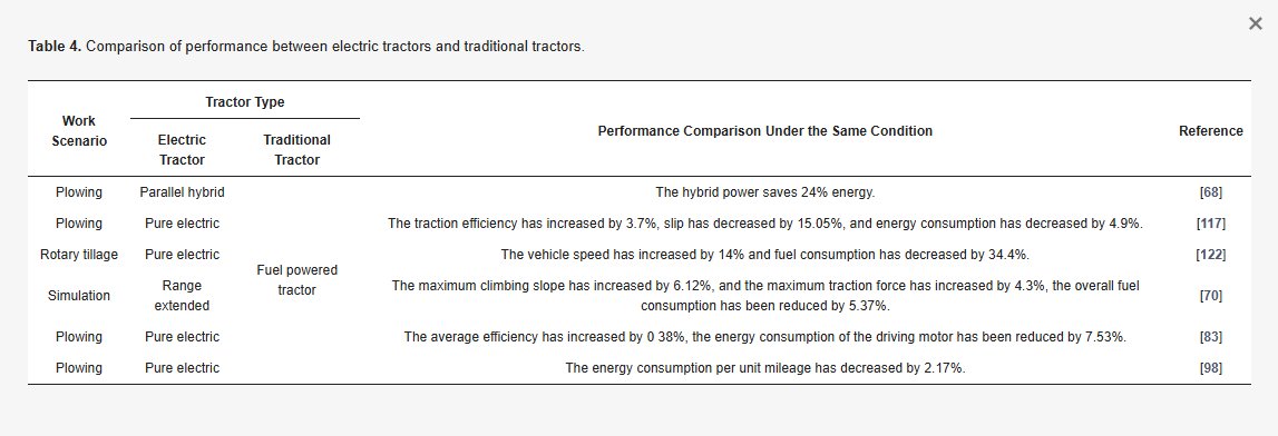 Table 4. Comparison of performance between electric tractors and traditional tractors.