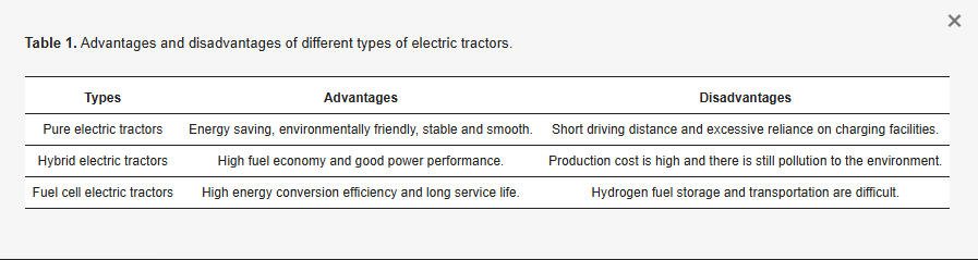 Table 1. Advantages and disadvantages of different types of electric tractors.