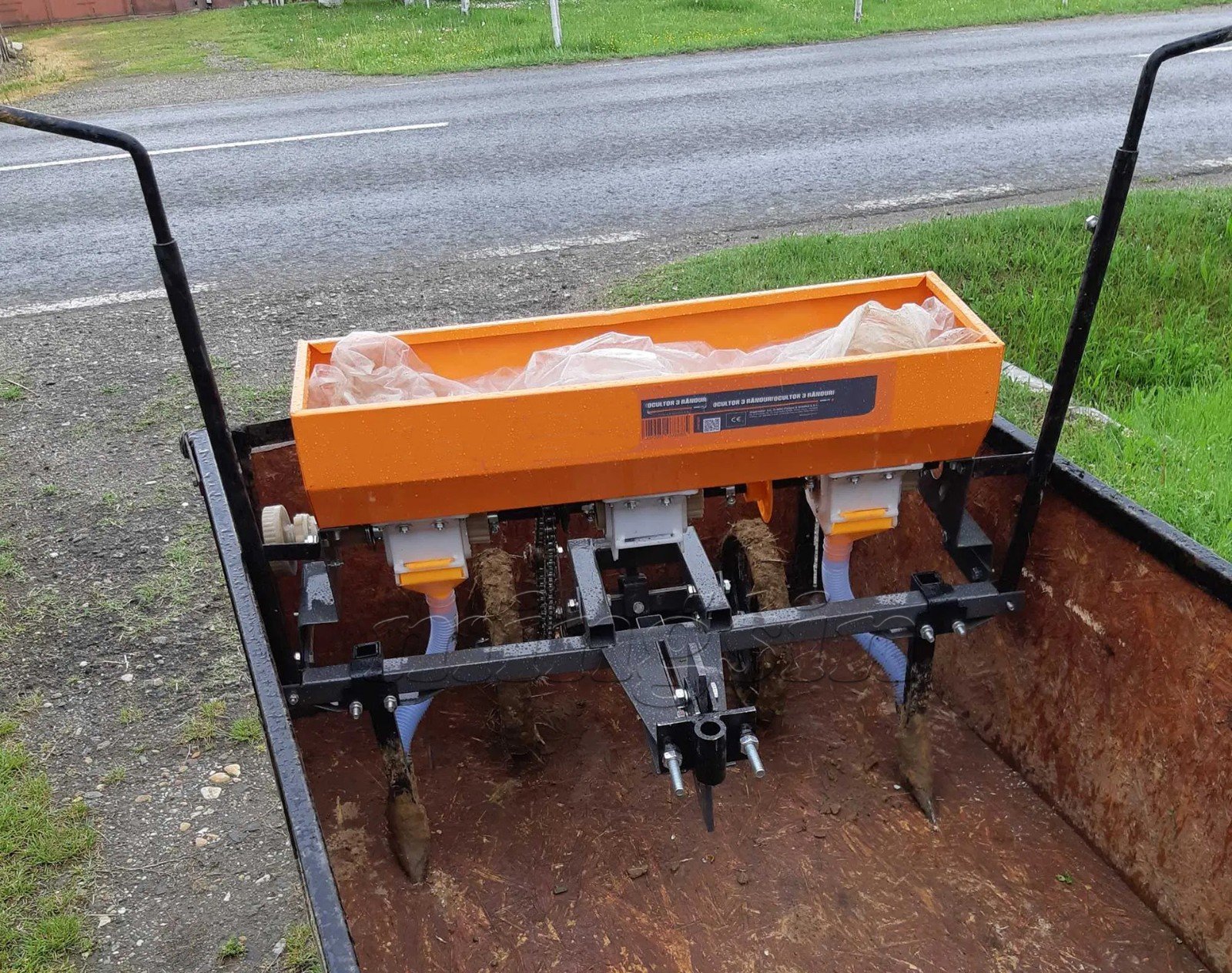 The 2BSF-3A 3-row seeder can be coupled to all cultivators. This product is the perfect choice for sowing small and medium plots, being suitable for both straw and legume cultivation. The planting distance between the rows is 35 cm. If you want the rows to be grown at a greater distance, you can remove the row from the middle thus increasing the distance to 70 cm.